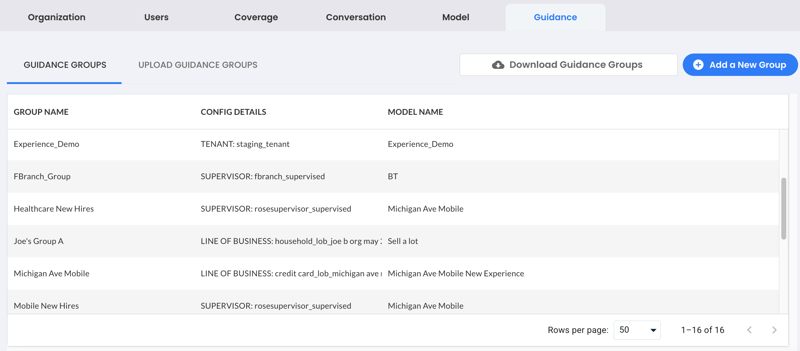 By extending pagination to these key areas, the Self-Administration interface is now more scalable and consistent with the behavior of other sections like the Users tab. Whether you're reviewing a large selection of topics, managing numerous custom models, or maintaining a growing set of guidance configurations, these enhancements make it easier to find what you need without performance slowdowns or overwhelming list views.